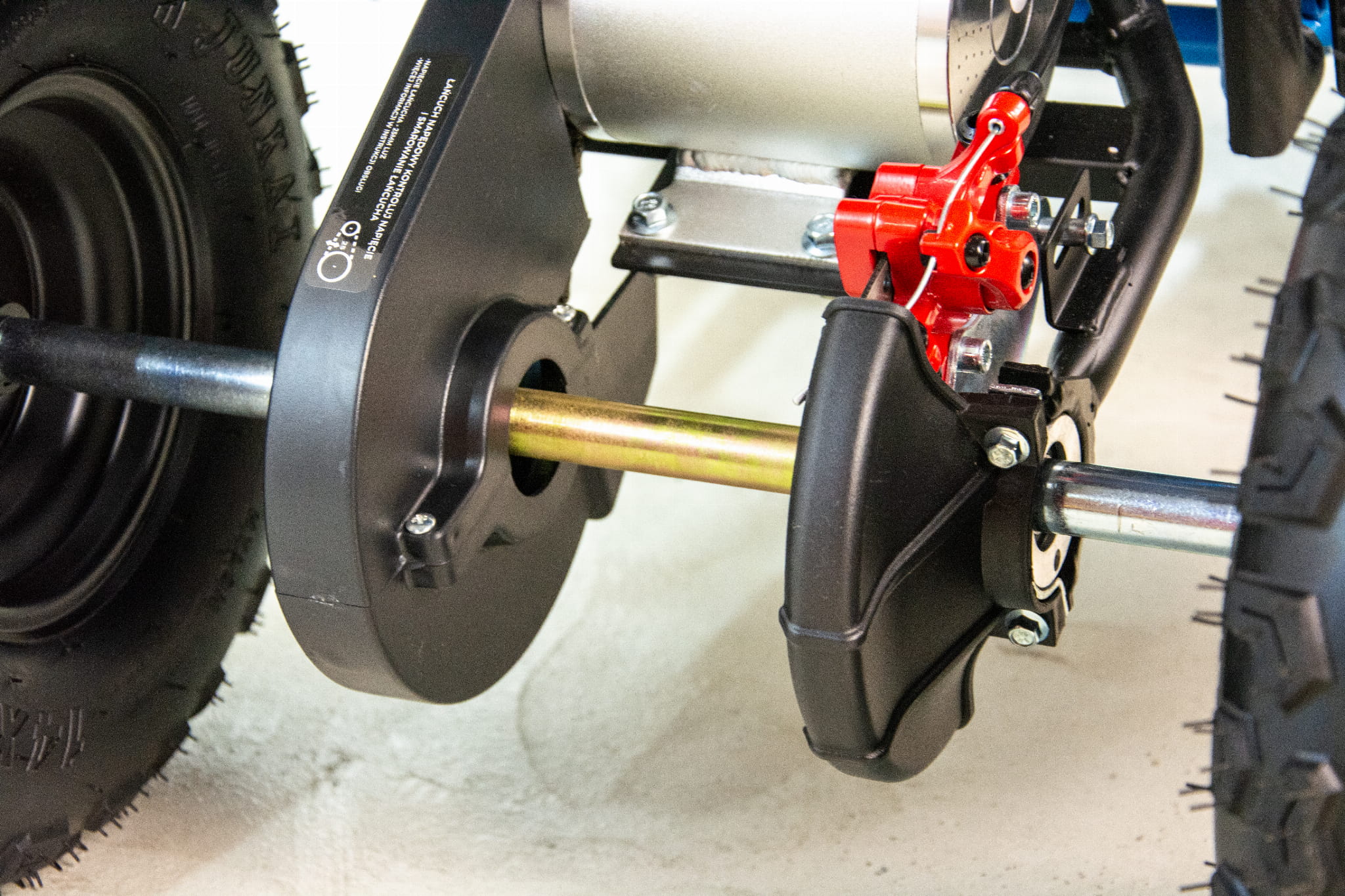 Z przodu pojazd został wyposażony w hamulce tarczowe umieszczone na każdym kole. Tylny hamulec tarczowy zamontowany na tylnej osi zapewnia odpowiednią siłę hamowania obu tylnych kół. Klamki hamulców umieszczone zostały na kierownicy