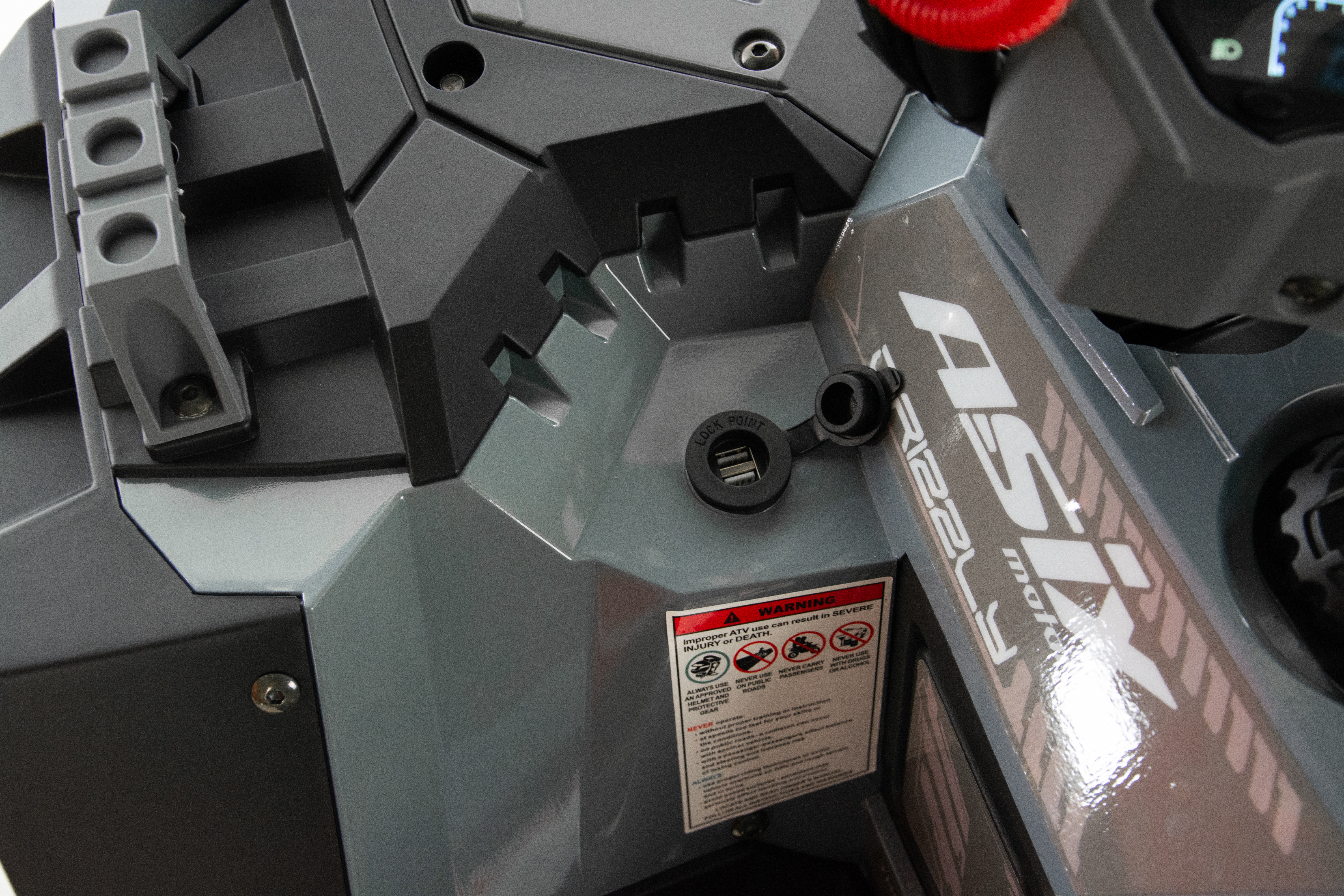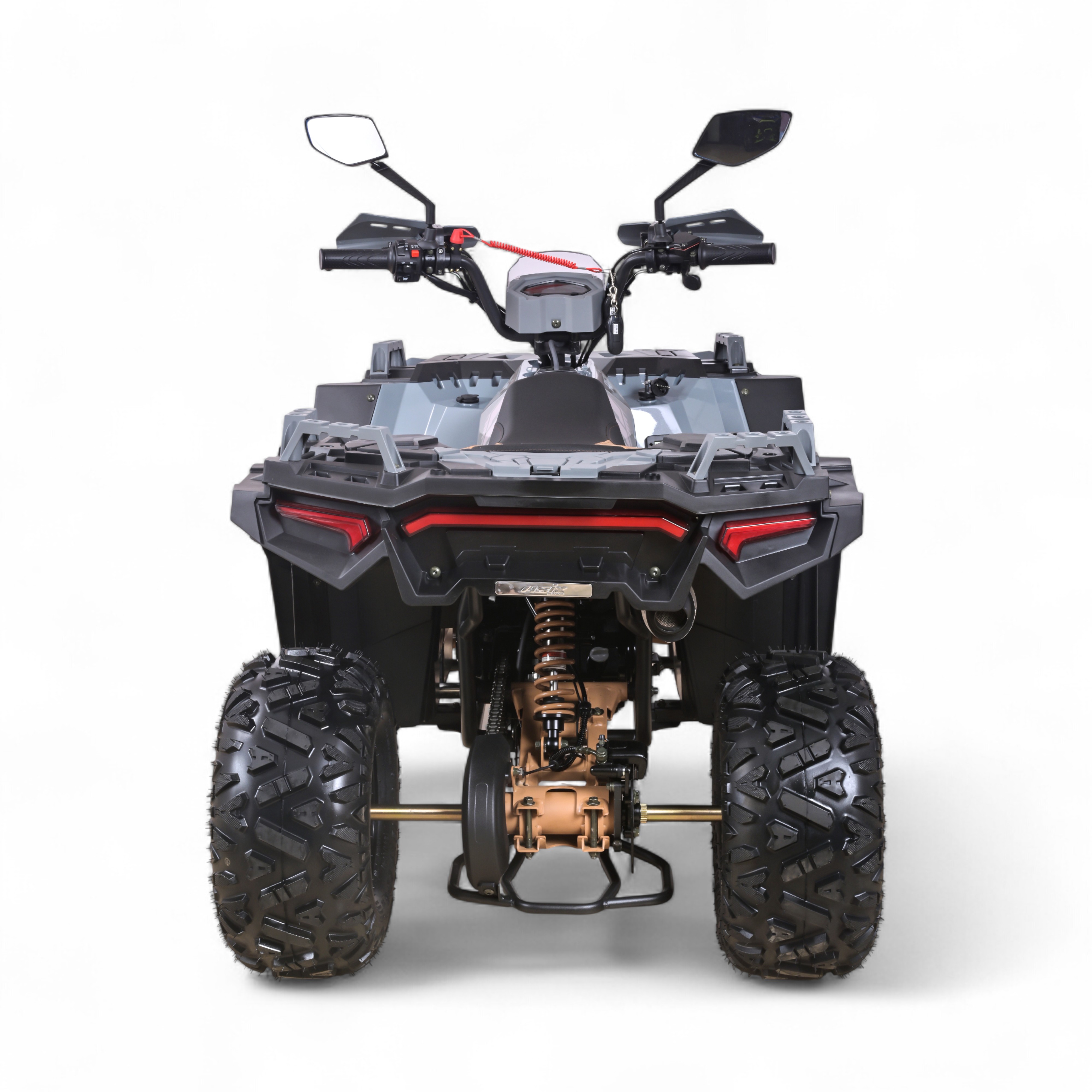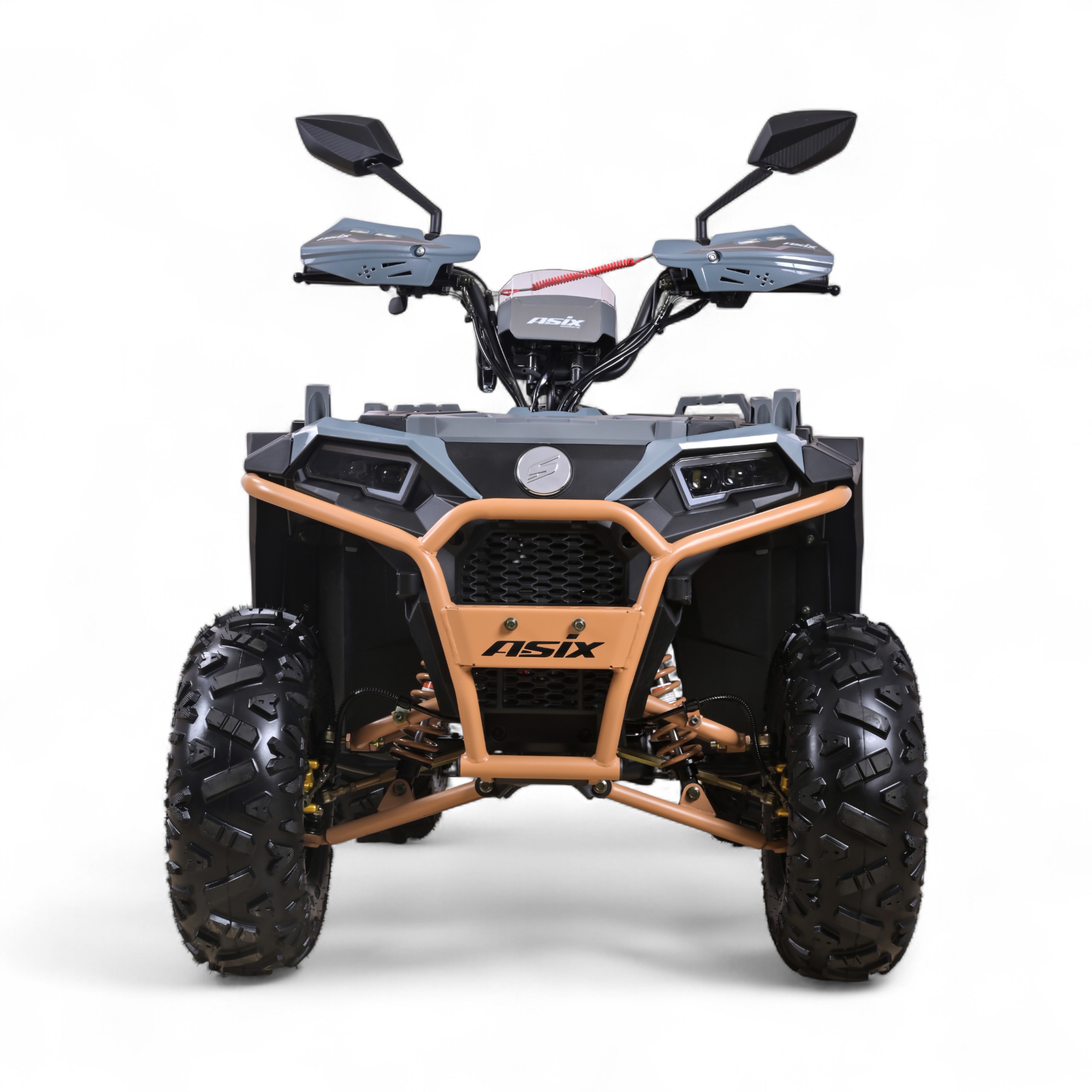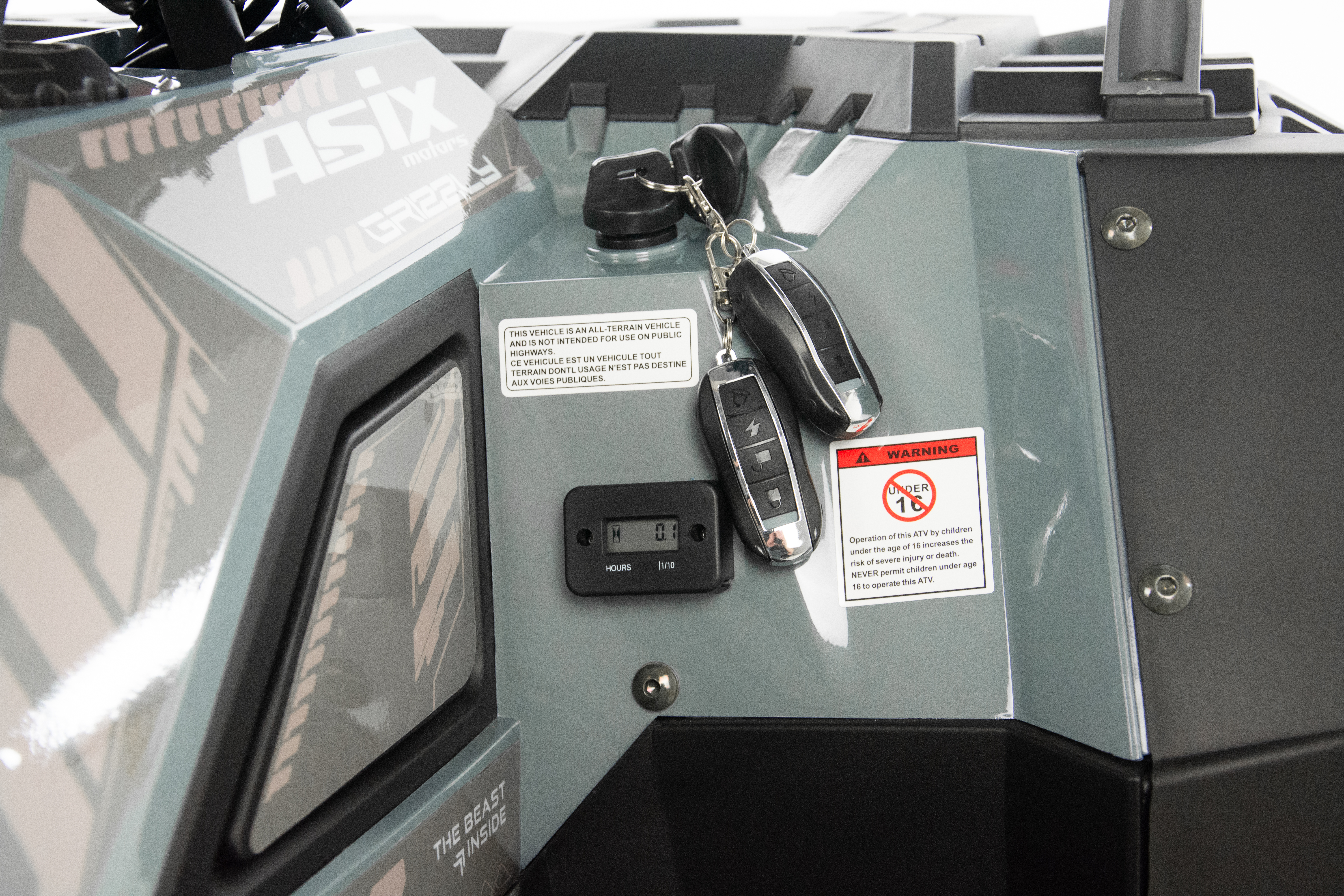 Quad ASIX Grizzly to pojazd z czterosuwowym silnikiem ZONSEN o pojemności 125cm3. Przeznaczony jest dla nastolatków. Pojazd wyposażony między innymi w pełne oświetlenie LED, kierunkowskazy, cyfrowy wyświetlacz, licznik motogodzin, gniazda USB, system antydrganiowy, hamulce hydrauliczne, handbary, klakson lusterka oraz pilot zdalnego gaszenia pojazdu
