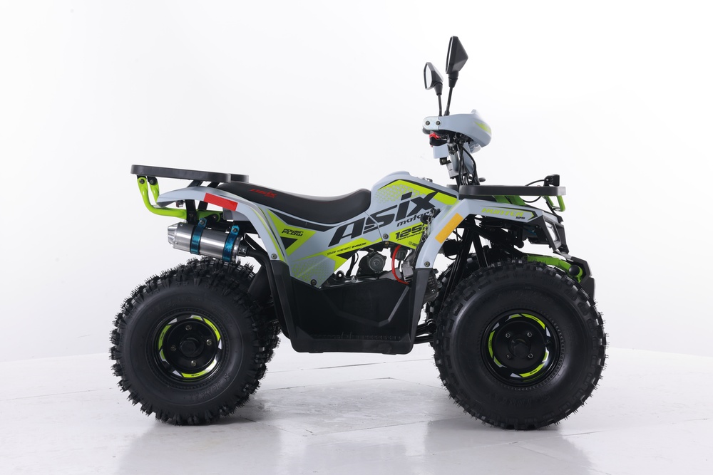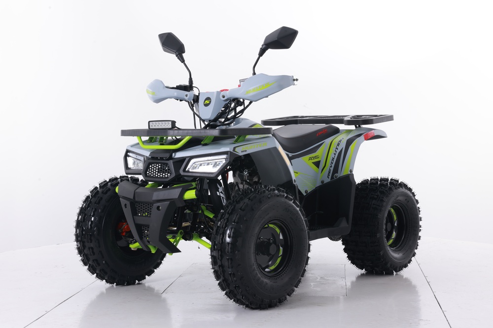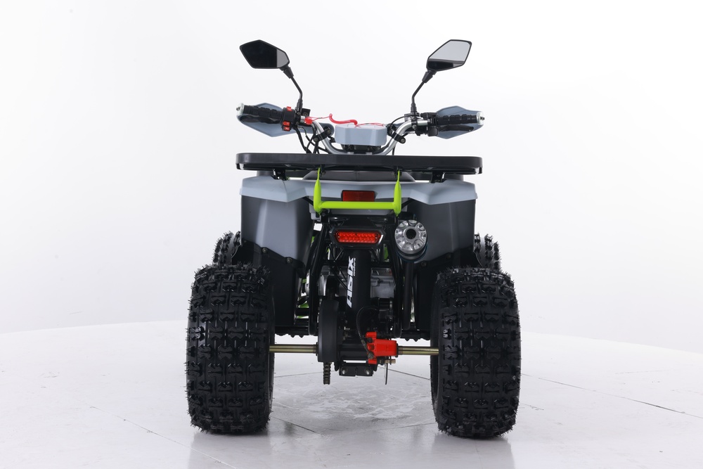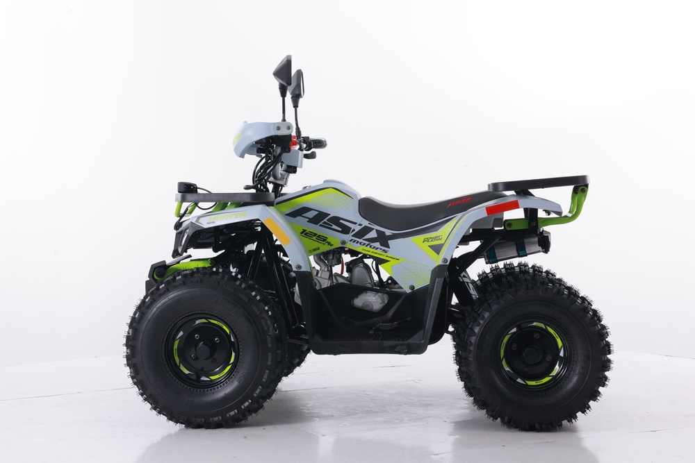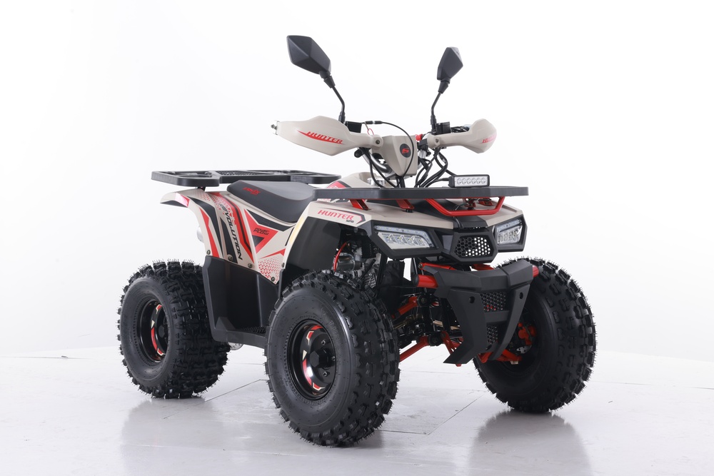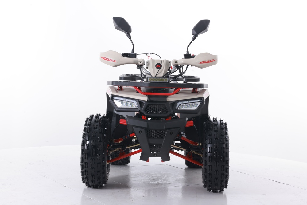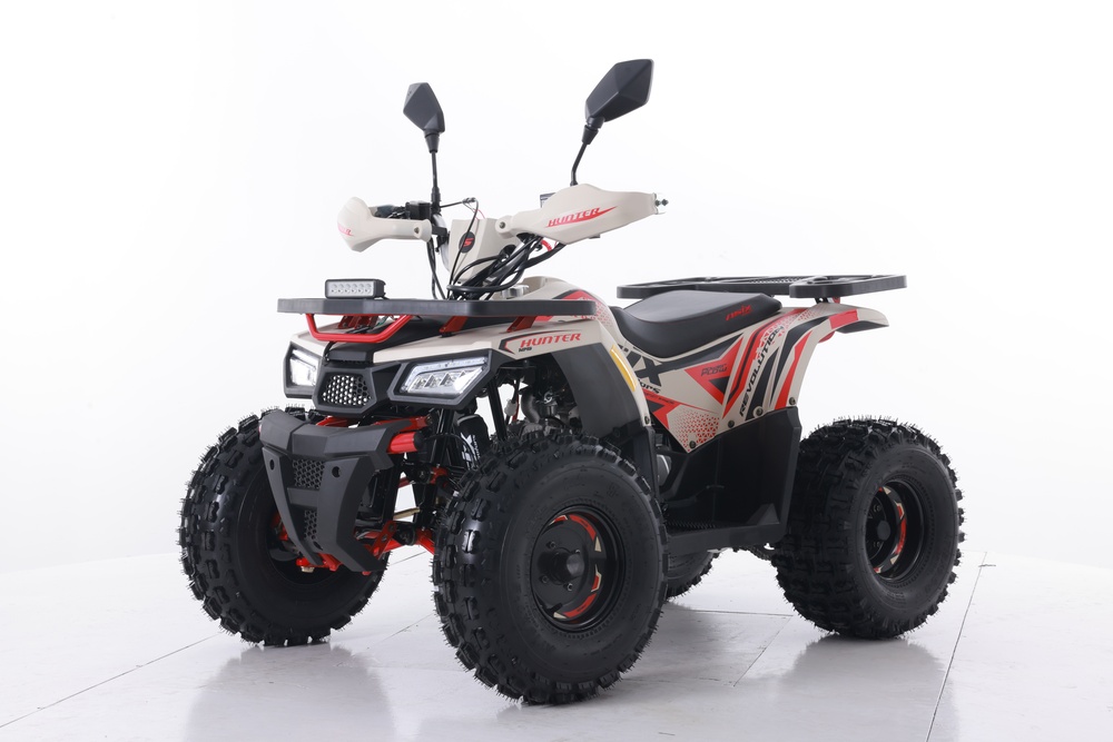 Quad HUNTER to pojazd odpalany na rozrusznik elektryczny. Napędzany jest silnikiem czterosuwowym o pojemności 125cm3, ze skrzynią automatyczną +wsteczny. Przeprawowy quad z oświetleniem LED przód-tył, licznikiem cyfrowym, lusterkami, zrywką bezpieczeństwa oraz regulacją prędkości i solidnym zawieszeniem na kołach 8″