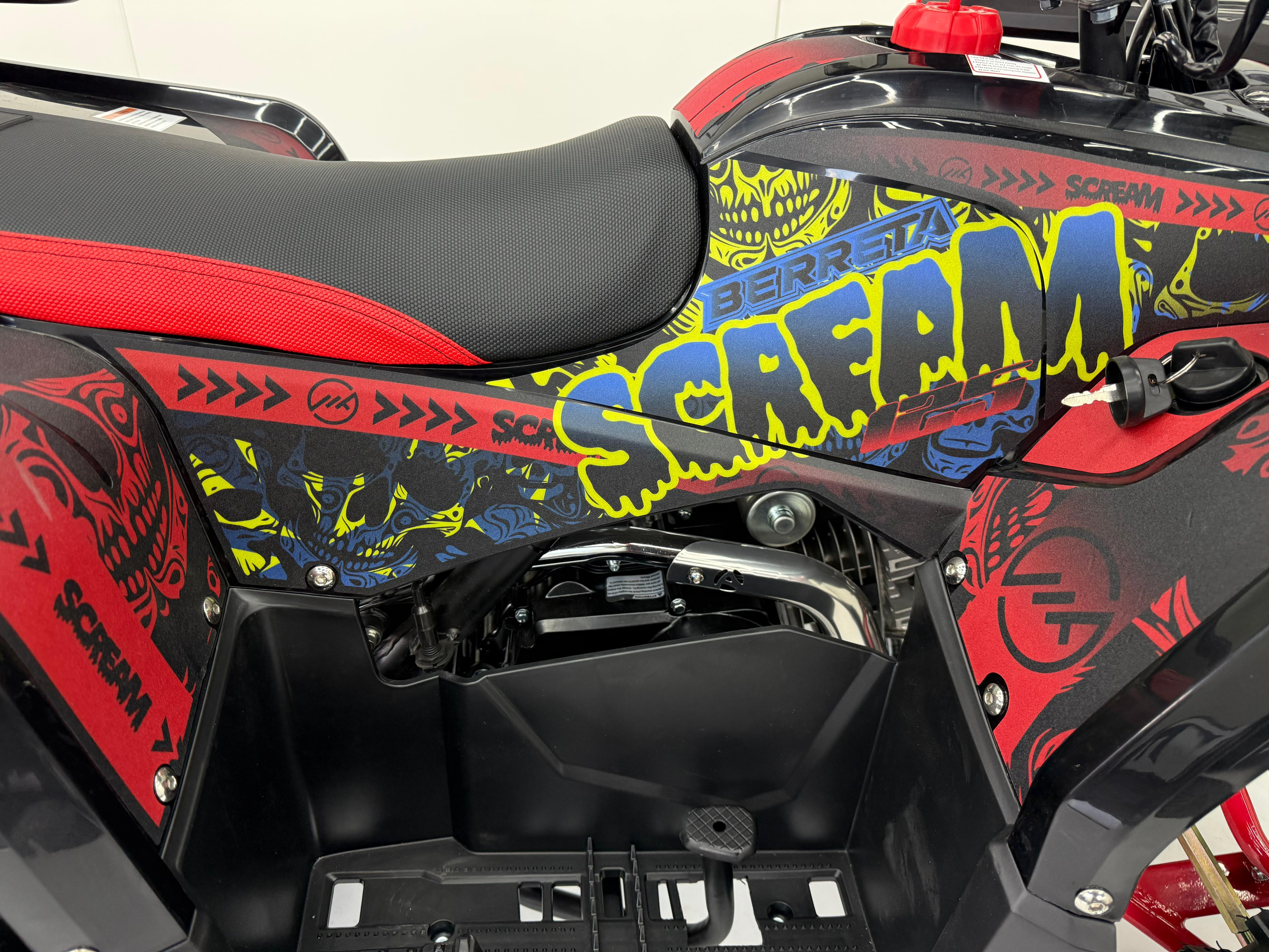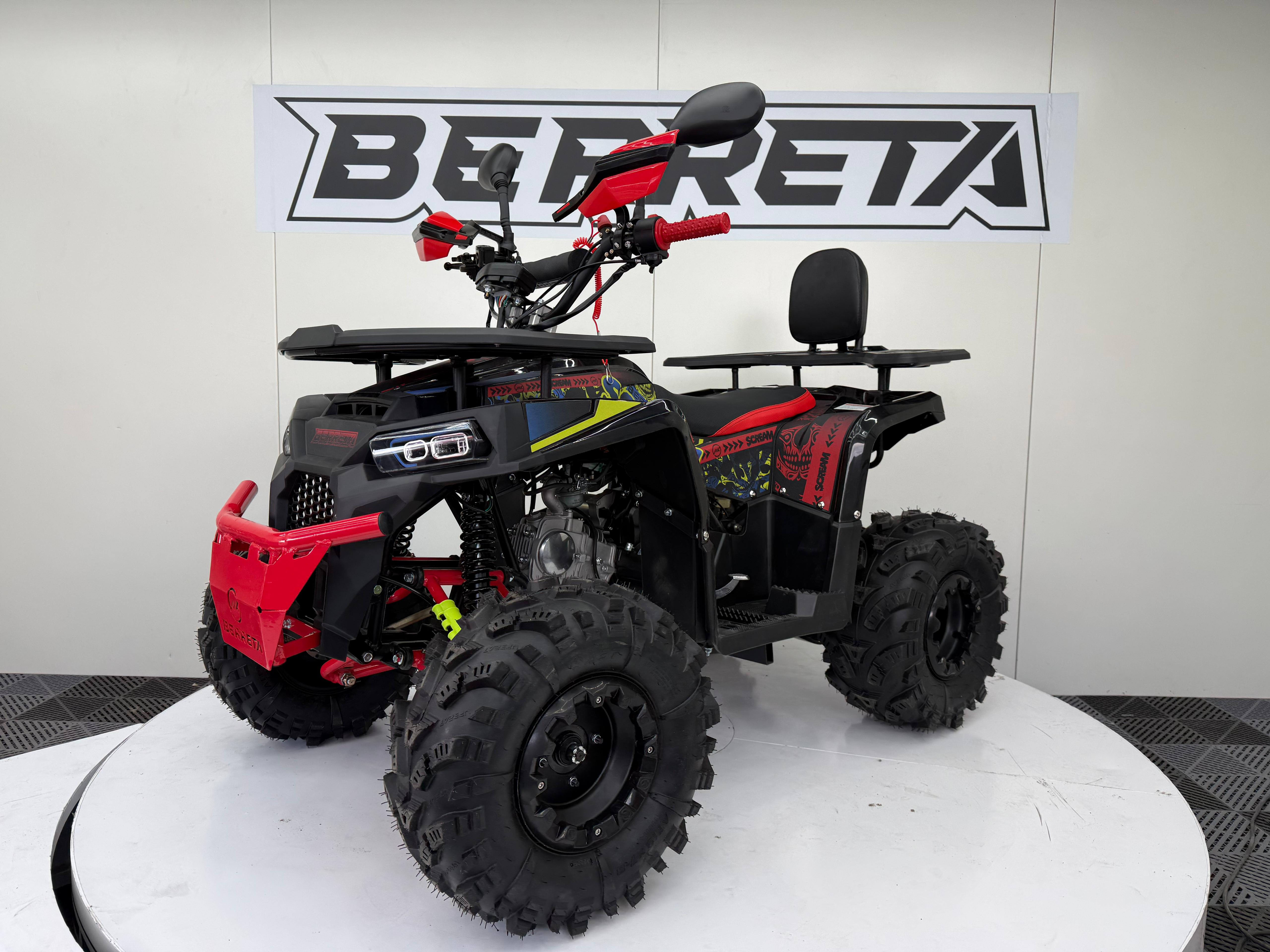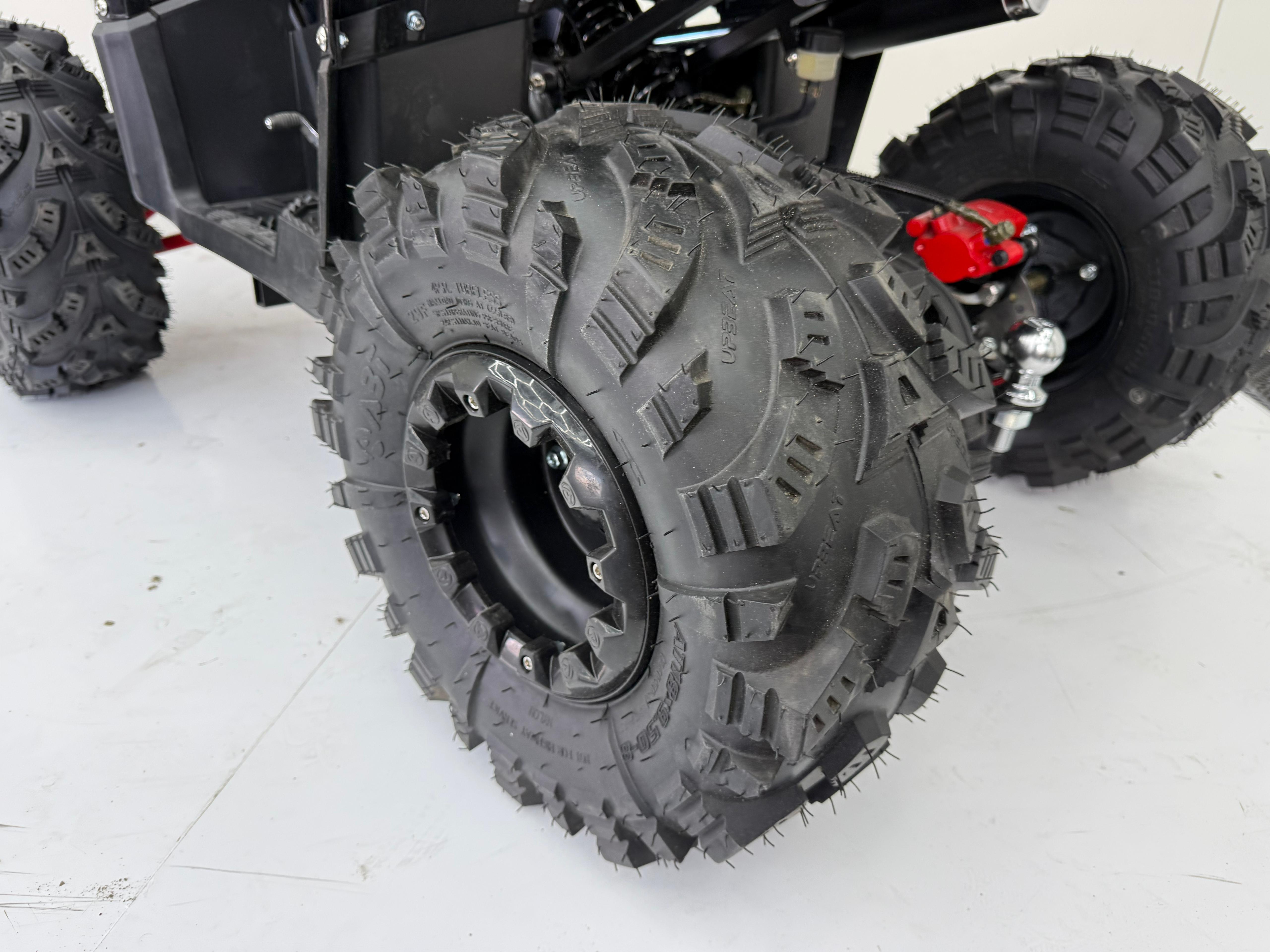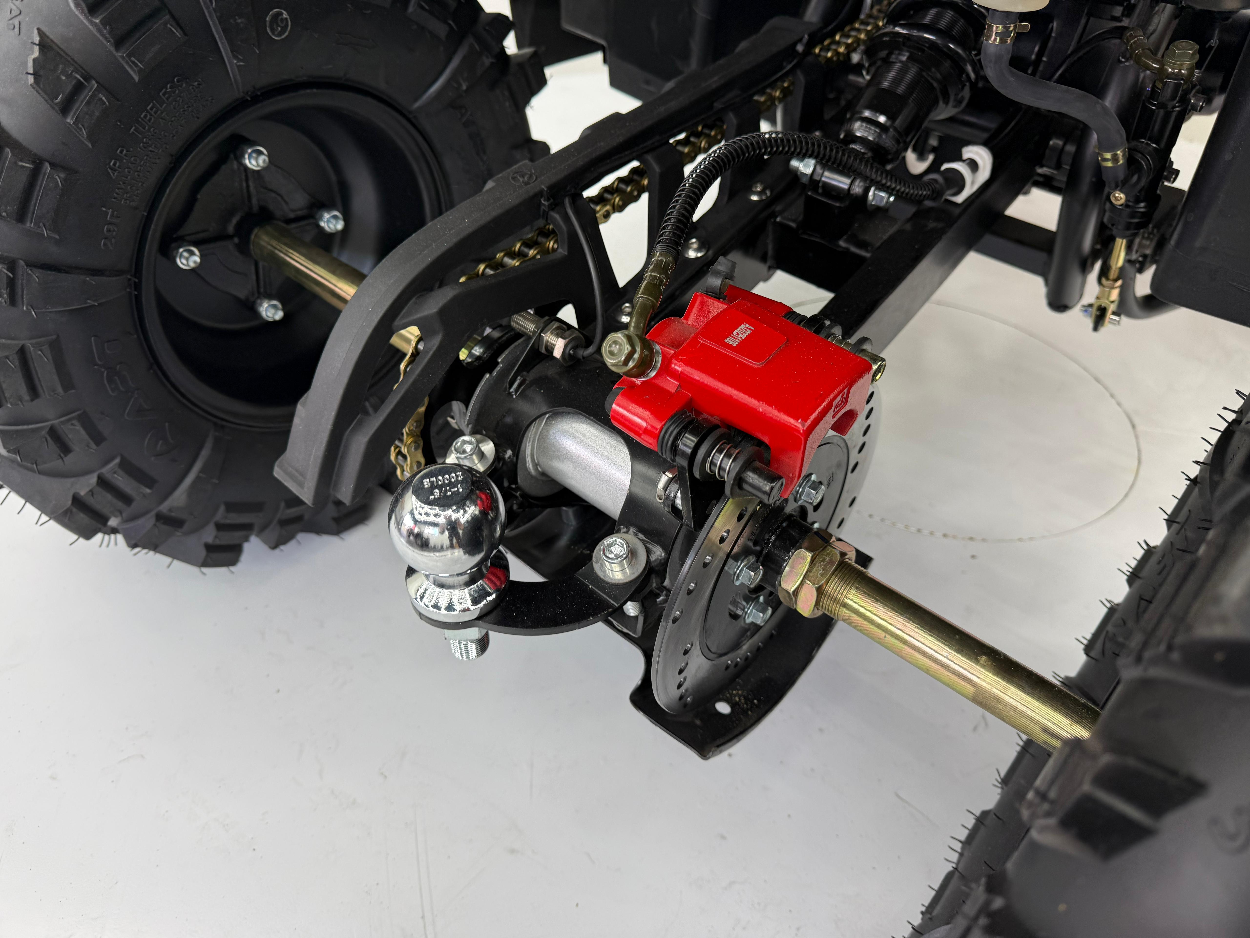 Wyposażenie: osłonki na kierownicy, nakładki na koła, światła LED, licznik, hamulec nożny, oparcie, lusterka, hak, kalamitki, naciąg łańcucha mimośrodowy.