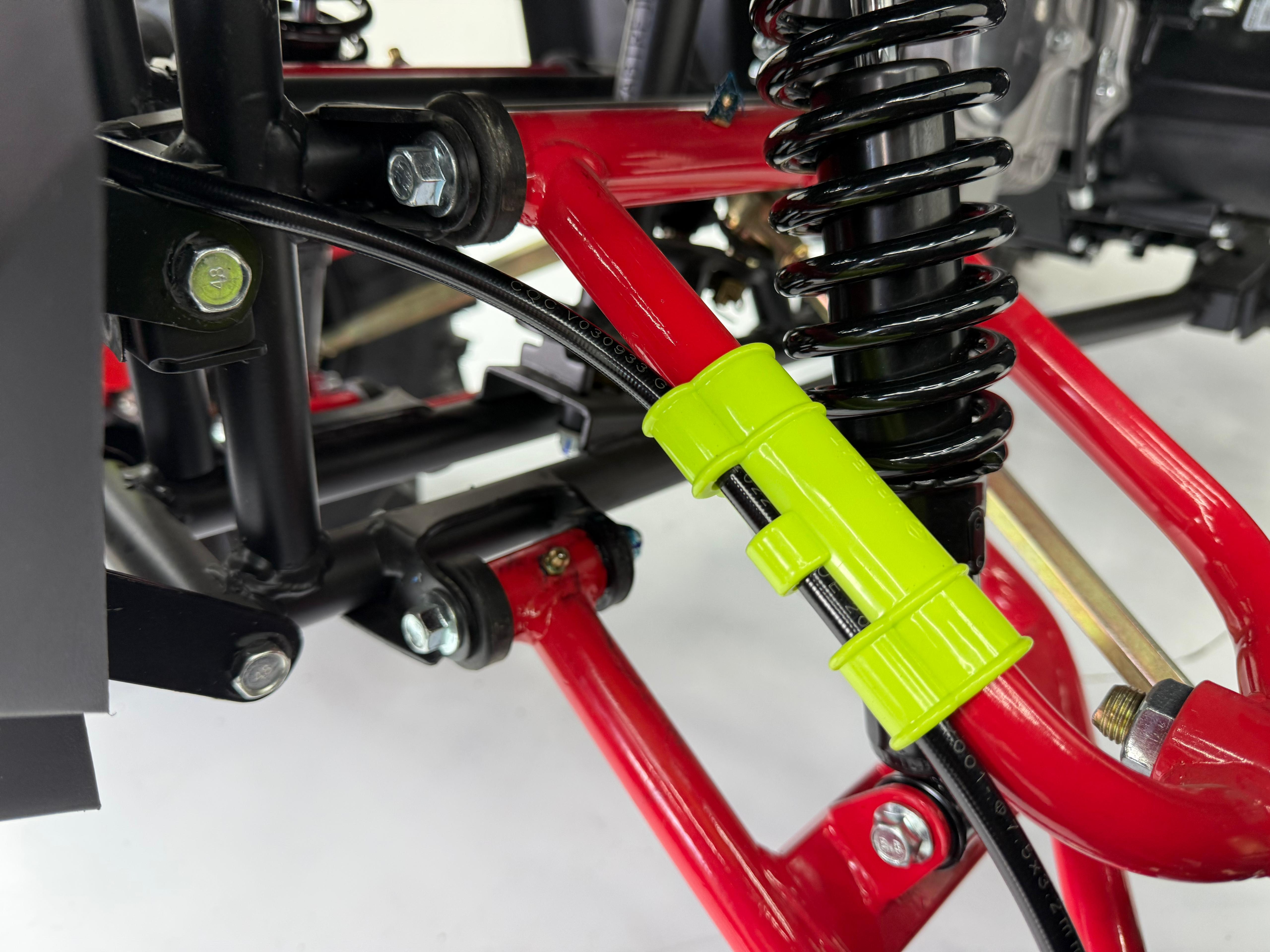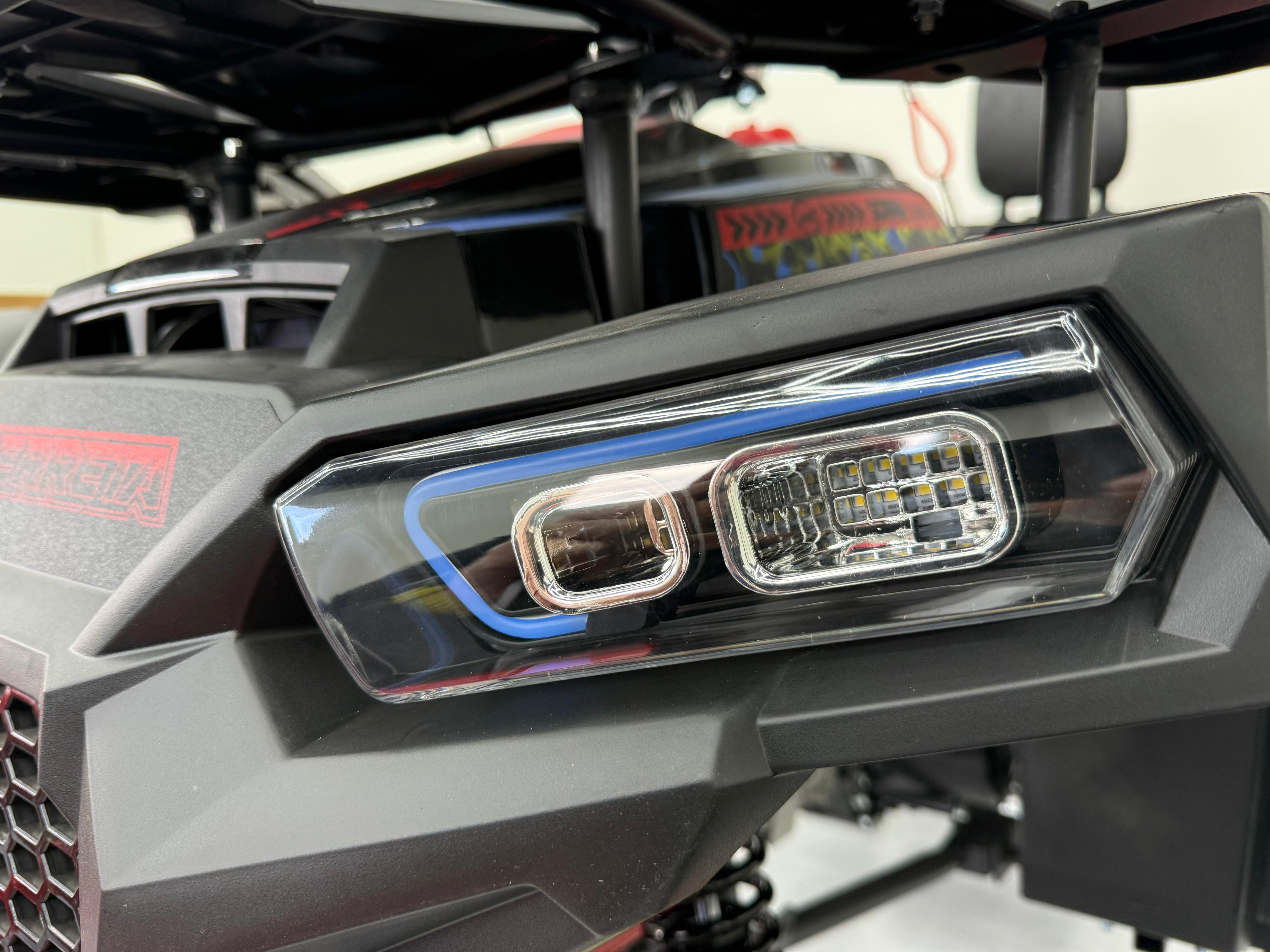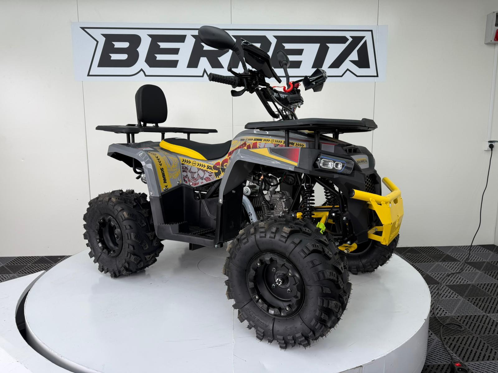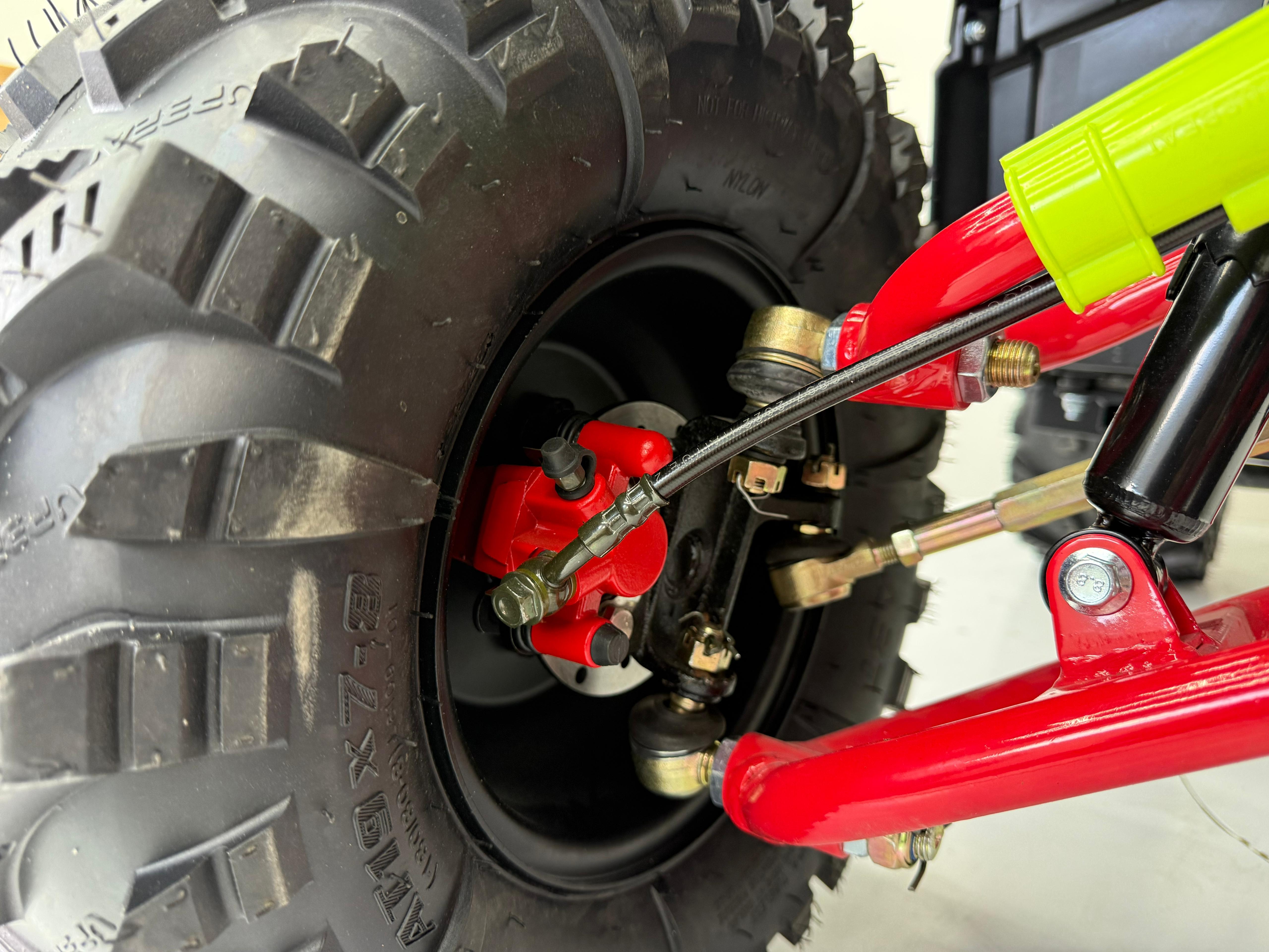 Wyposażenie: osłonki na kierownicy, nakładki na koła, światła LED, licznik, hamulec nożny, oparcie, lusterka, hak, kalamitki, naciąg łańcucha mimośrodowy.