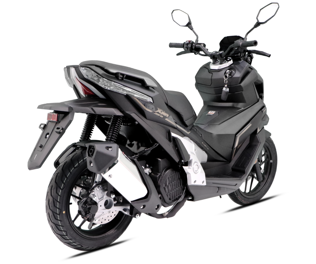 Reflektor LED LENS oraz opony o wysokiej wydajności gwarantują doskonałą widoczność i przyczepność, co wpływa na bezpieczeństwo i komfort jazdy. Dodatkowo, skuter wyposażono w regulowany podwójny amortyzator, który dostosowuje się do warunków drogowych, zapewniając płynność jazdy.