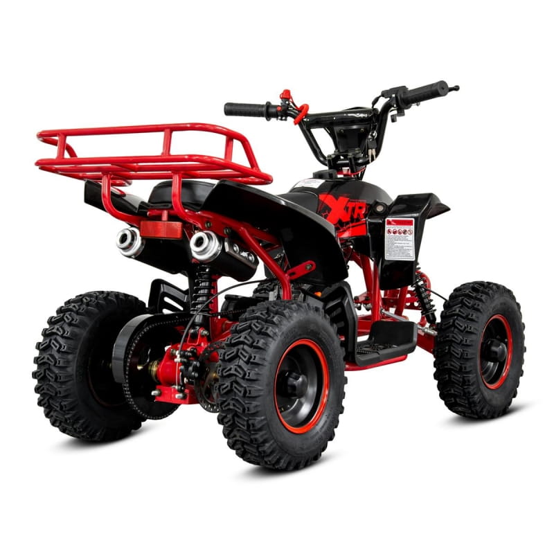 Mini quad XTR M8/6 odpalany szarpakiem easy start to pojazd z silnikiem dwusuwowym (2T) o pojemności 50cm3 przeznaczony dla dzieci od 4 roku życia. Sportowy quad zestawiony na dużych 6" kołach, wyposażony w hamulce tarczowe oraz regulację prędkości.