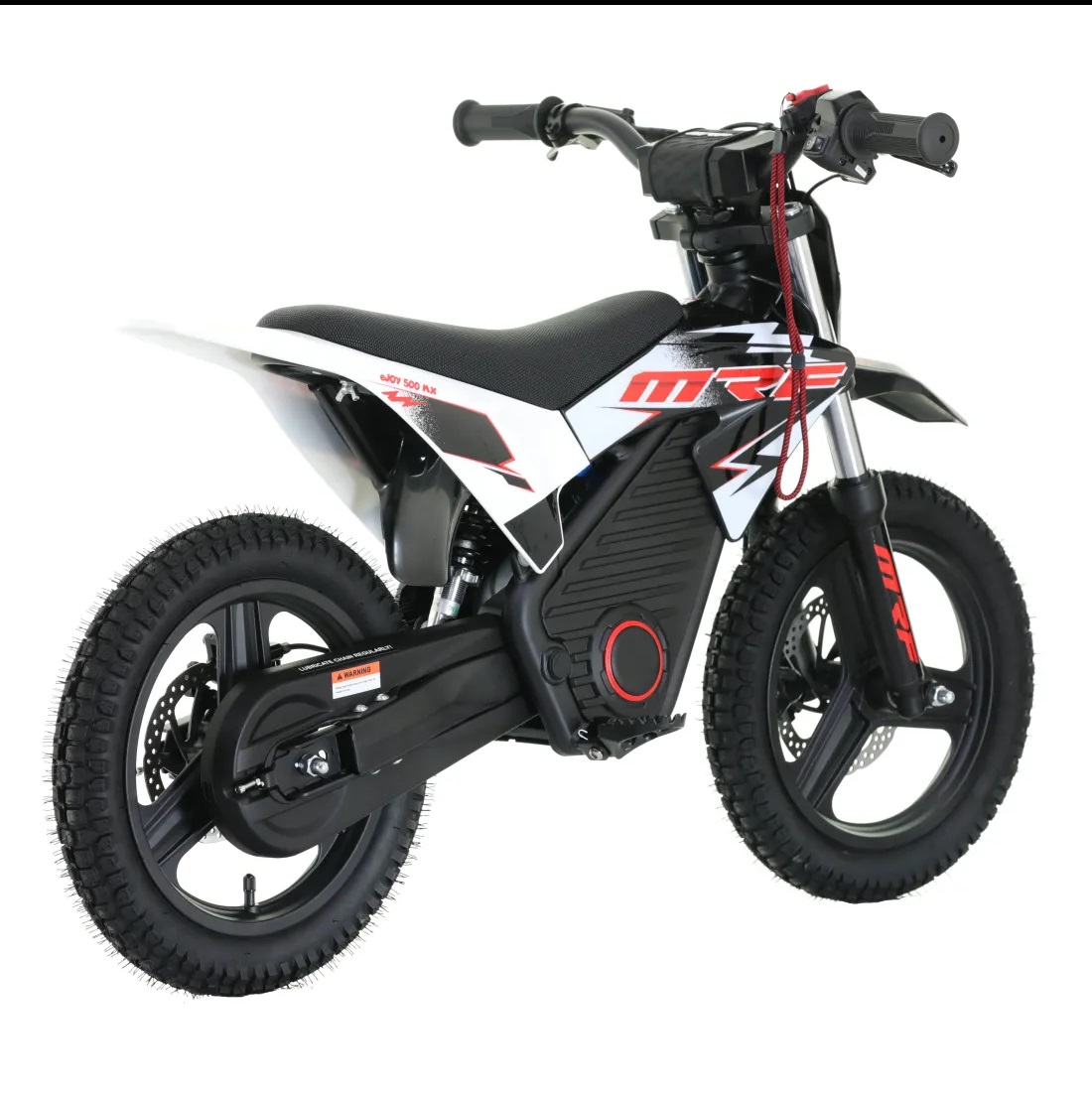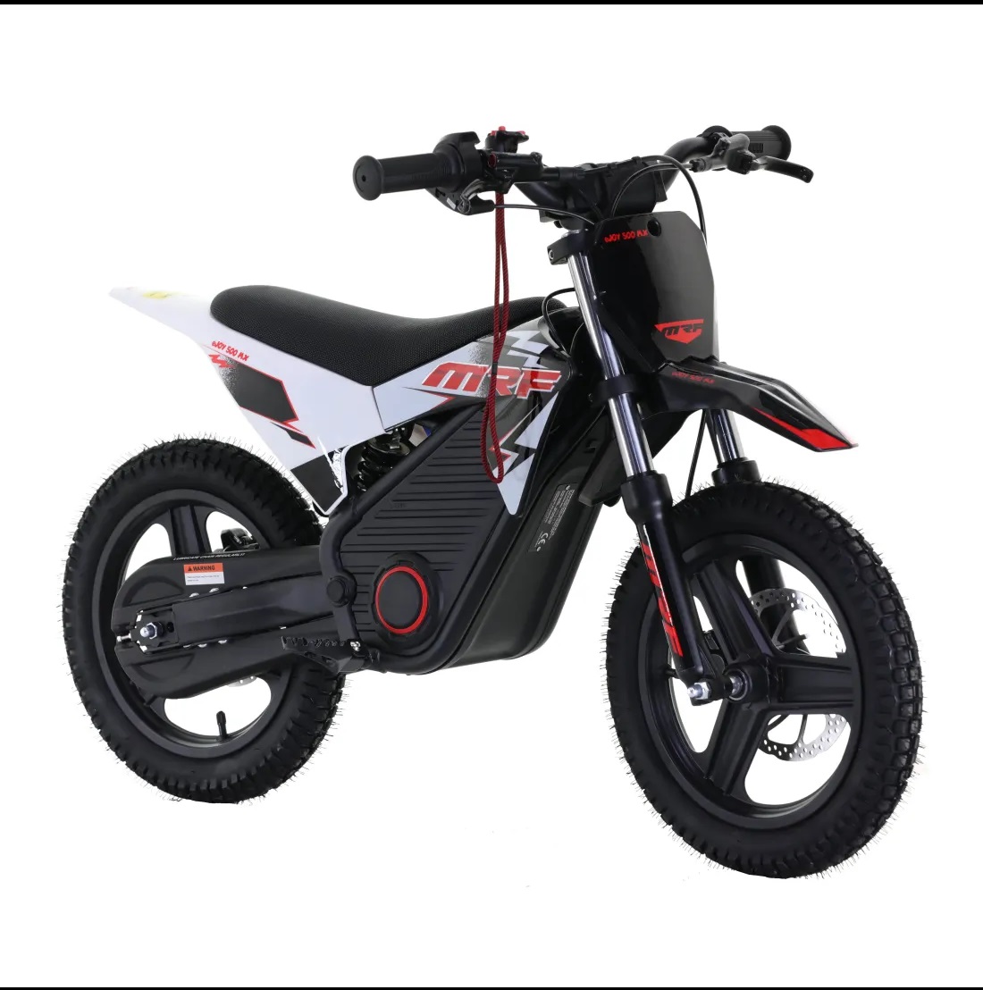 MRF eJOY 500 MX to najbardziej zaawansowany model w rodzinie eJOY – elektryczny motocykl stworzony dla dzieci, które nie boją się wyzwań i są gotowe na więcej. Ten motocykl nie ma nic wspólnego z dziecięcą zabawką – to pełnoprawna maszyna z bezszczotkowym silnikiem 500 W, która osiąga nawet 35 km/h, oferując potężną dawkę emocji i możliwości. Wysokiej jakości komponenty, trwała konstrukcja i ergonomiczna rama dają pewność prowadzenia, komfort i bezpieczeństwo – także przy bardziej dynamicznej jeździe. eJOY 500 MX został zaprojektowany z tą samą dbałością o detale, jakiej oczekujemy od motocykli dla dorosłych, ale dostosowany do możliwości młodych riderów. Trzy poziomy prędkości pozwalają rozwijać umiejętności w kontrolowany sposób, a 14-calowe koła i solidne zawieszenie radzą sobie świetnie na różnych nawierzchniach – od trawnika po leśne ścieżki.