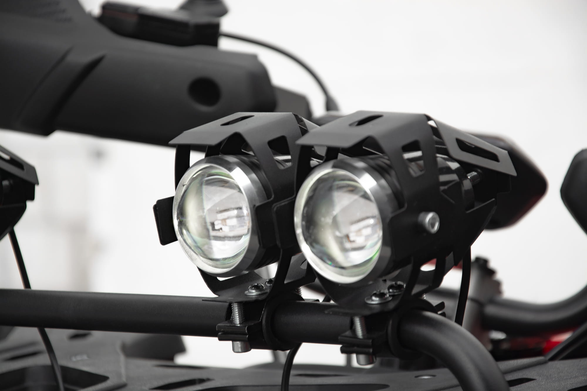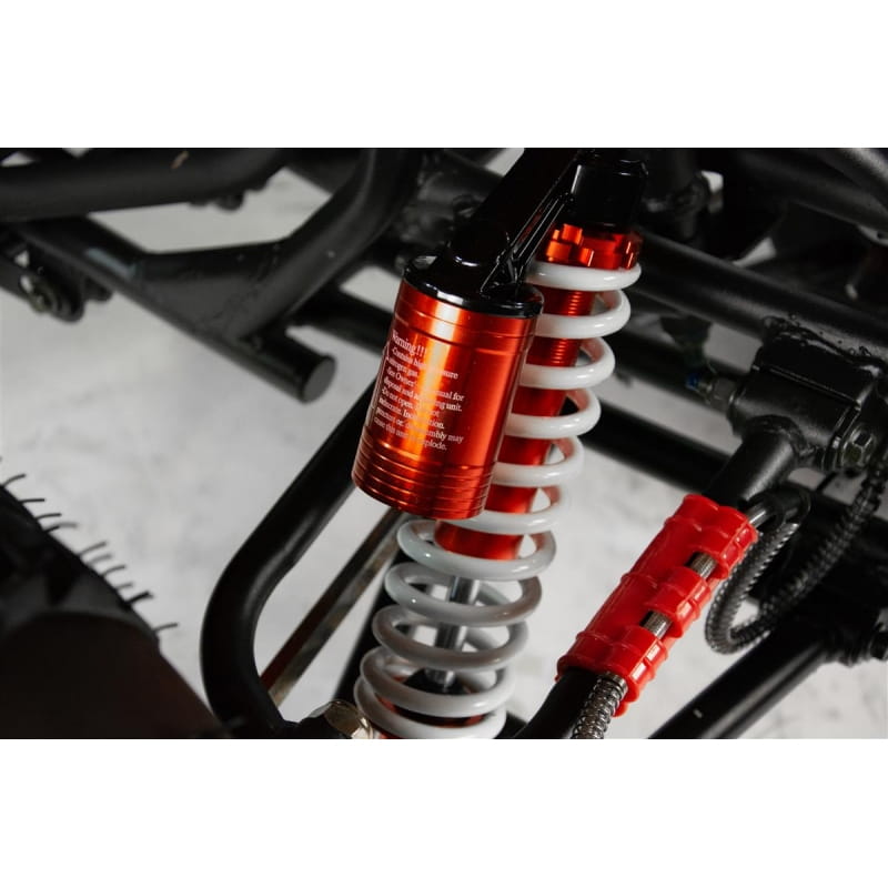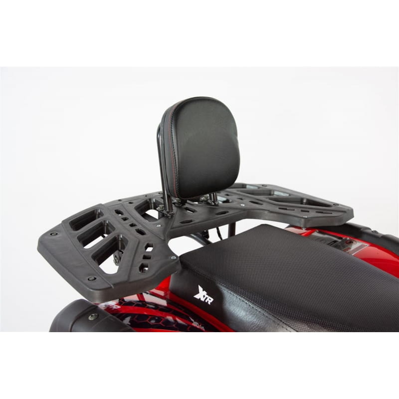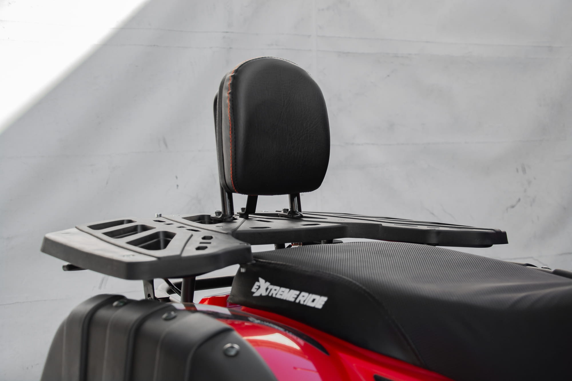 Posiada bogate wyposażenie: oświetlenie LED, lampy soczewkowe, wielofunkcyjny licznik cyfrowy, zrywkę bezpieczeństwa, regulację prędkości, handbary chroniące dłonie przed skaleczeniami, duże bagażniki z przodu i tyłu quada, lusterka, hak, oparcie, regulację twardości zawieszenia.