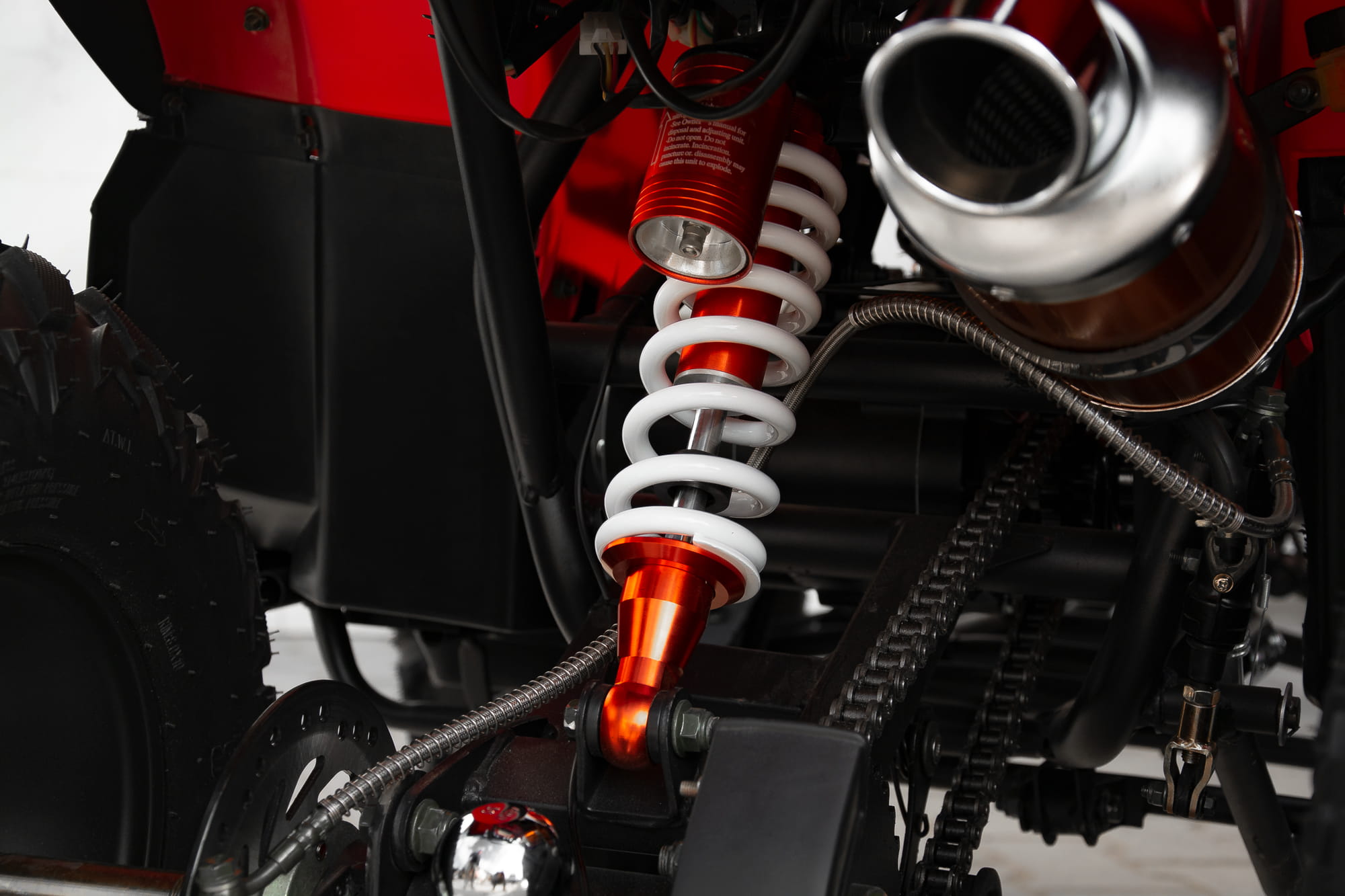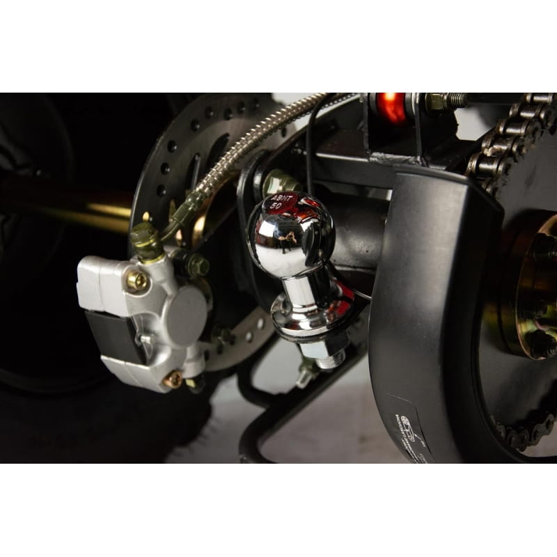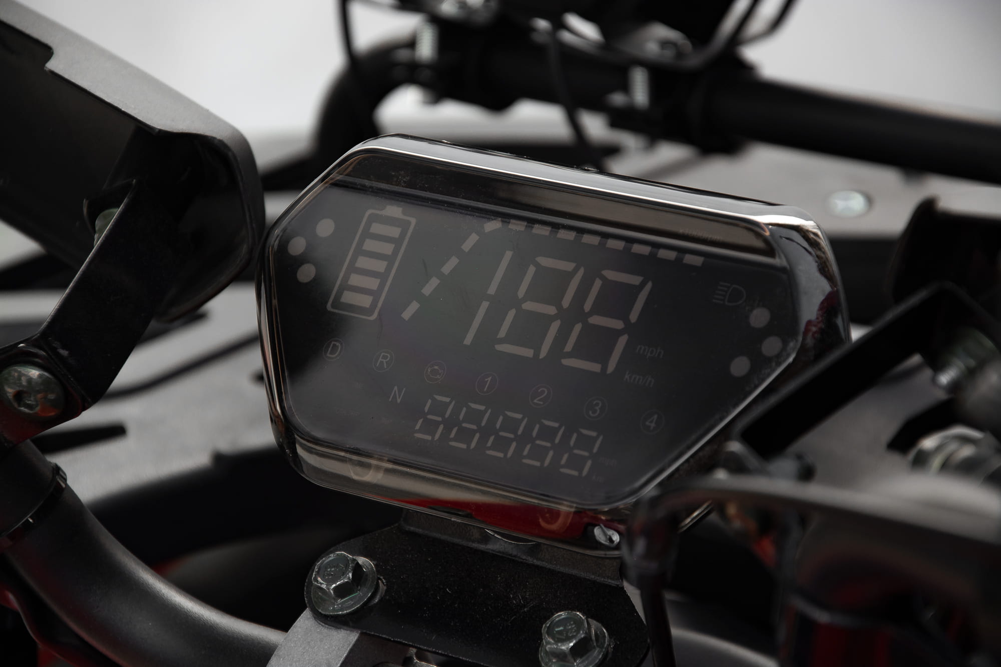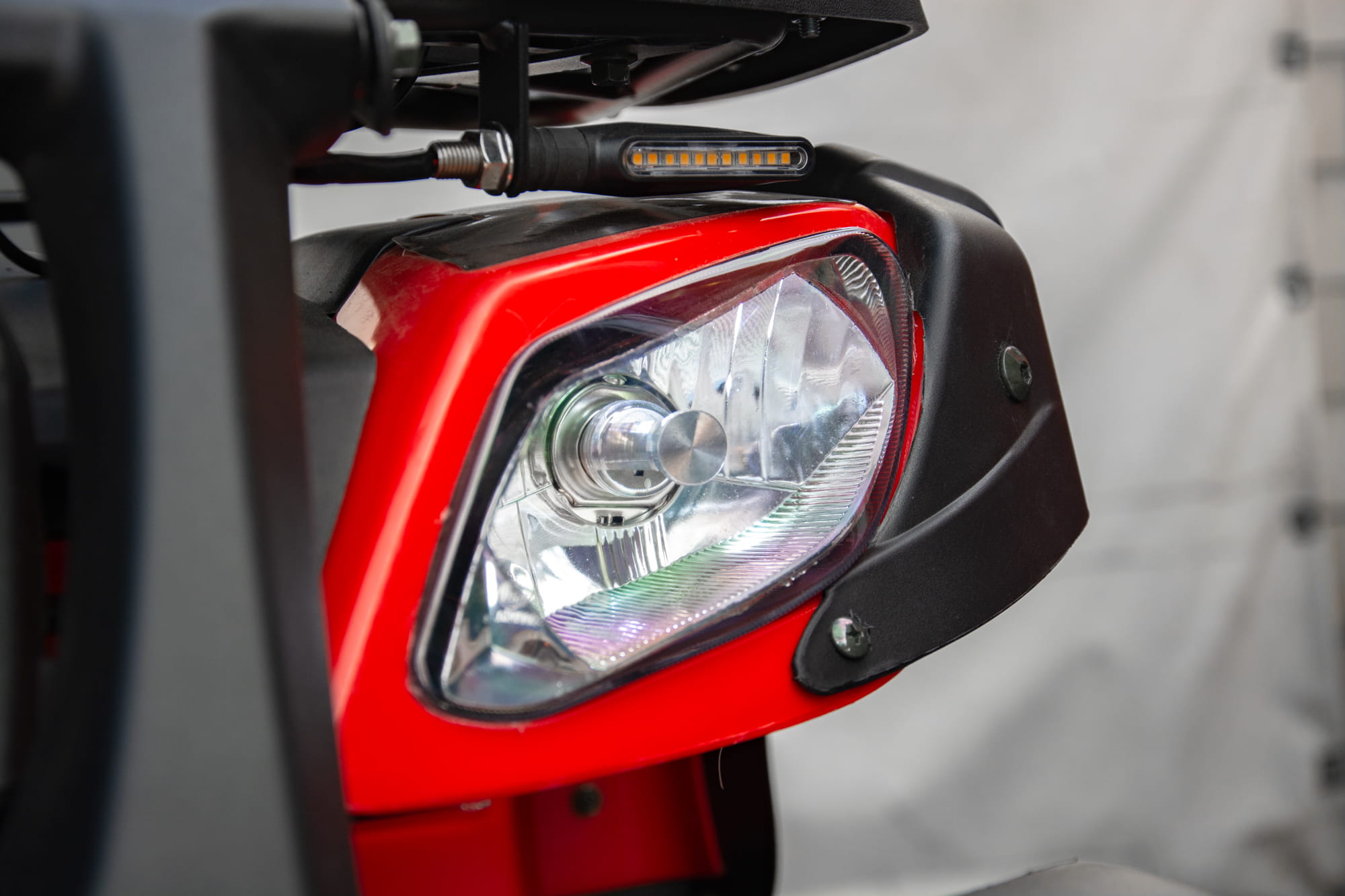 Posiada bogate wyposażenie: oświetlenie LED, lampy soczewkowe, wielofunkcyjny licznik cyfrowy, zrywkę bezpieczeństwa, regulację prędkości, handbary chroniące dłonie przed skaleczeniami, duże bagażniki z przodu i tyłu quada, lusterka, hak, oparcie, regulację twardości zawieszenia.