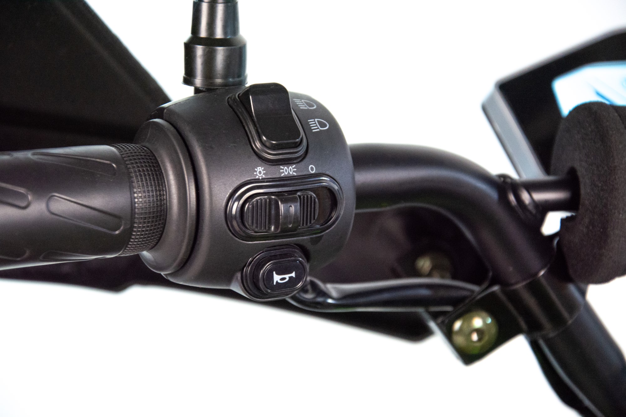 Przeniesienie napędu odbywa się za pomocą wałka napędowego z mechanizmem różnicowym. Model ten wyposażony jest w pełne oświetlenie LED, licznik cyfrowy, handbary oraz lusterka. Posiada 3-stopniową regulację prędkości jazdy do przodu oraz bieg wsteczny